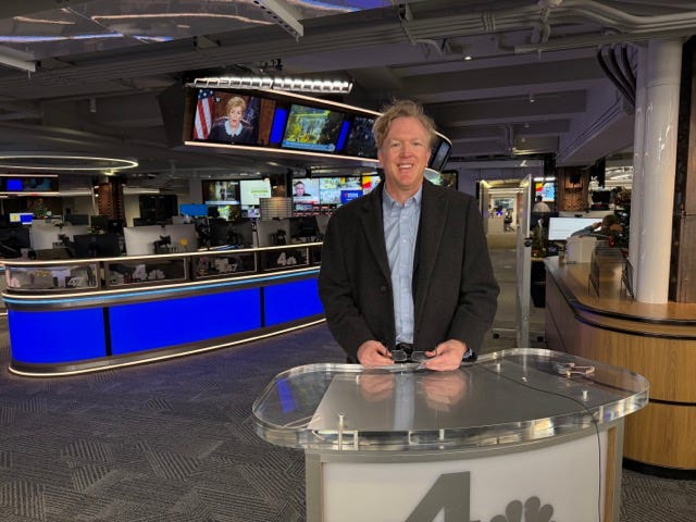 Then, I got to check out the new studio setup at NBC New York. The producer was nice enough to take a picture of me, looking more than a little windblown, at the anchor desk.