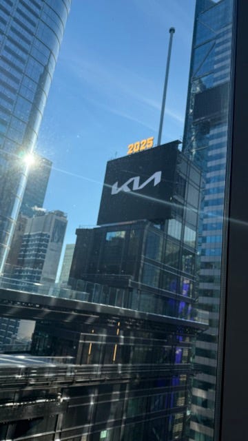 After we spoke, she was nice enough to point out some of the amazing views from the Reuters office. For example, you can see the famous New Year’s Eve ball from the cafe in the Reuters office. Or rather, you would be able to if it were there right now. The long pole in the picture is where the ball-drop happens. They’ve just removed the ball for a while for some reason.